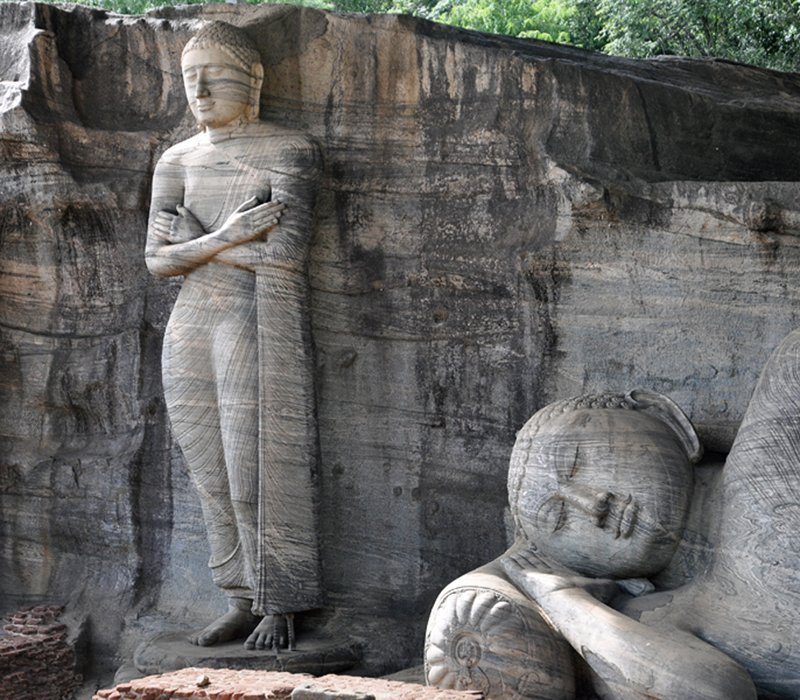 Gal Vihara is the most celebrated site in Polonnaruwa, featuring four magnificent Buddha statues carved from a single granite rock. The standing, seated, and reclining figures reflect extraordinary craftsmanship and deep spiritual symbolism, making this site a highlight of any visit.